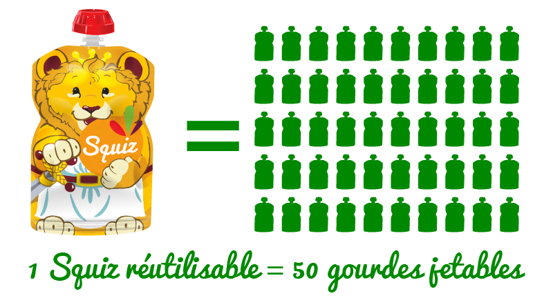Une gourde Squiz réutilisable a une durée de vie équivalente à environ 50